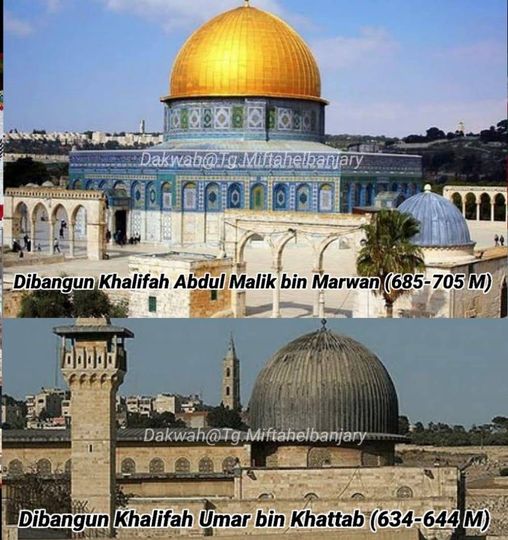 Bangunan masjid dari gambar pertama merupakan Masjid Kubah Emas Kekuningan dibangun oleh Sultan Abdul Malik bin Marwan pada masa kekhalifahan Muawiyyah yang berkuasa dalam masa rentang antara tahun 685-705 M.